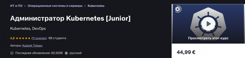 Цена: 1350р. — Экономия от стоимости -90% Взнос: 126р. Складчина: Администратор Kubernetes [Junior] [Udemy] [Kazbek...