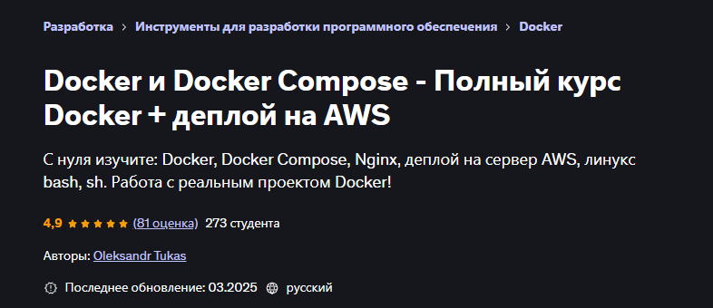 Docker и Docker Compose — Полный курс Docker + деплой на AWS [Udemy] [Oleksandr Tukas]