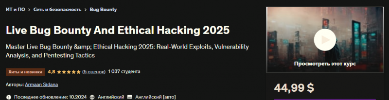 Живой баг-баунти и этический хакинг 2025 [Udemy] [Армаан Сидана]