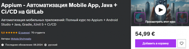 Appium — Автоматизация Mobile App, Java + Ci/CD на GitLab [udemy] [Mykola Shchypailo]