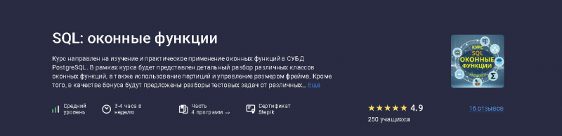 Цена: 1000р. — Экономия от стоимости -87% Взнос: 124р. Складчина: SQL: оконные функции [Stepik] [Алексей...
