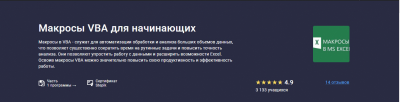 Цена: 551р. — Экономия от стоимости -84% Взнос: 84р. Складчина: Макросы VBA для начинающих [Stepik]...