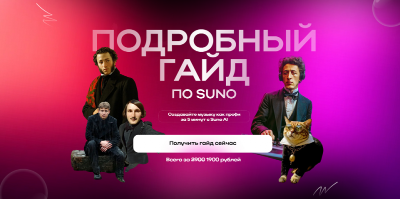 Цена: 1900р. — Экономия от стоимости -92% Взнос: 136р. Складчина: Подробный гайд по Suno [GNeuro...