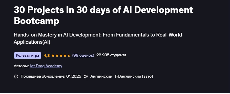 30 проектов за 30 дней — учебный лагерь по ИИ разработке [Udemy] [Jet Drag Academy]