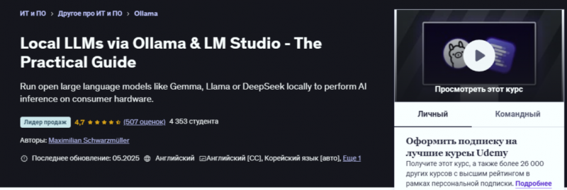 Локальные LLM через Ollama и LM Studio — Практическое руководство [Udemy] [Maximilian Schwarzmüller]
